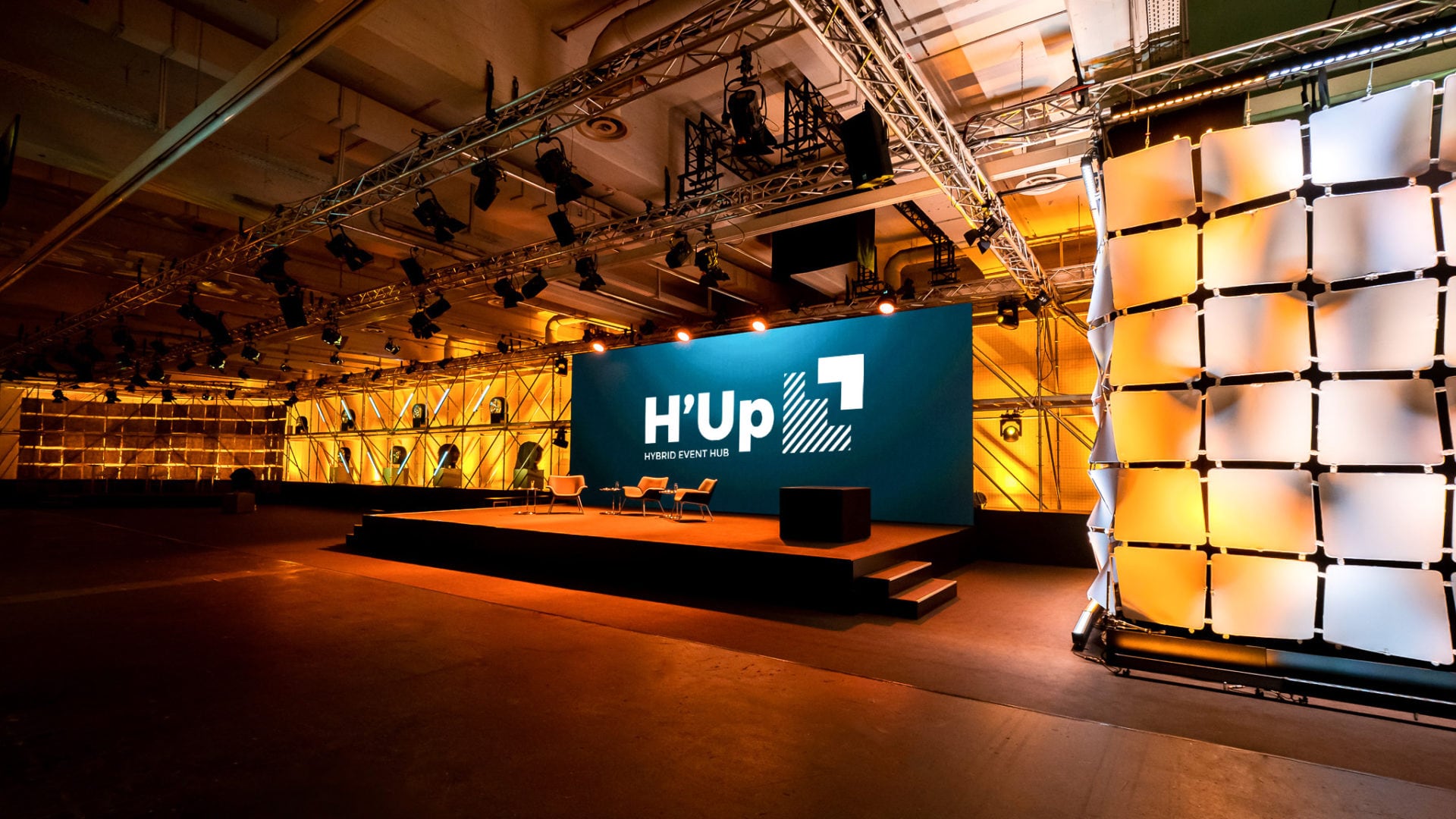 Get in. Create. Perform. Das H‘Up ist eine multifunktionale Eventlocation mit fest installiertem aber variablem Streaming-Studio. Direkt spielfertig für ONLINE-, HYBRID- & LIVE-Events. Der Schauplatz für digitale und analoge Live-Kommunikation. So bietet das H'Up verschiedene Möglichkeiten Events umzusetzen – nicht nur als Streaming-Studio, sondern auch als eine attraktive Eventlocation.